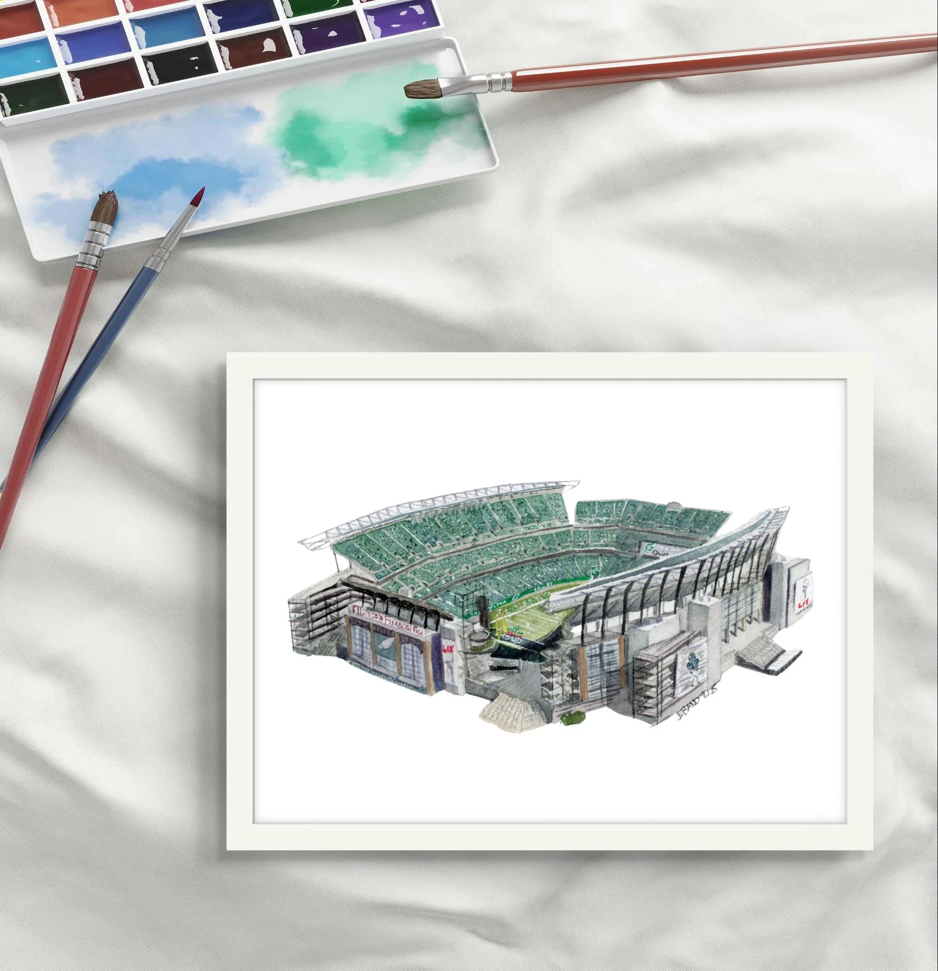 Celebrate the Baltimore Orioles with this painting of Camden Yards at Oriole Park with this watercolor art print. This piece captures the spirit of the Baltimore's beloved team and the fanbase that backs them.