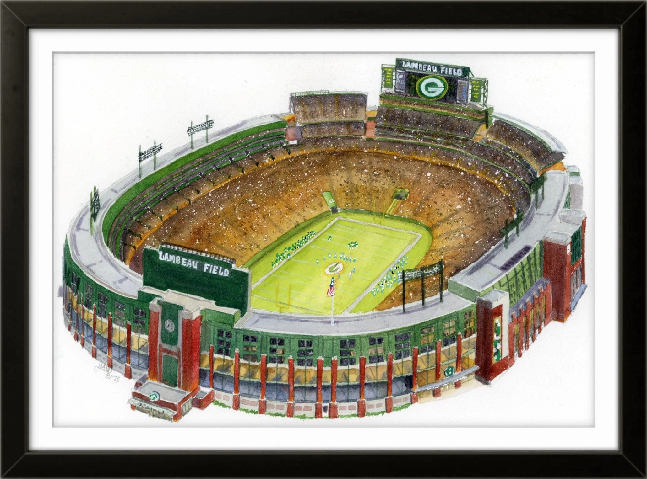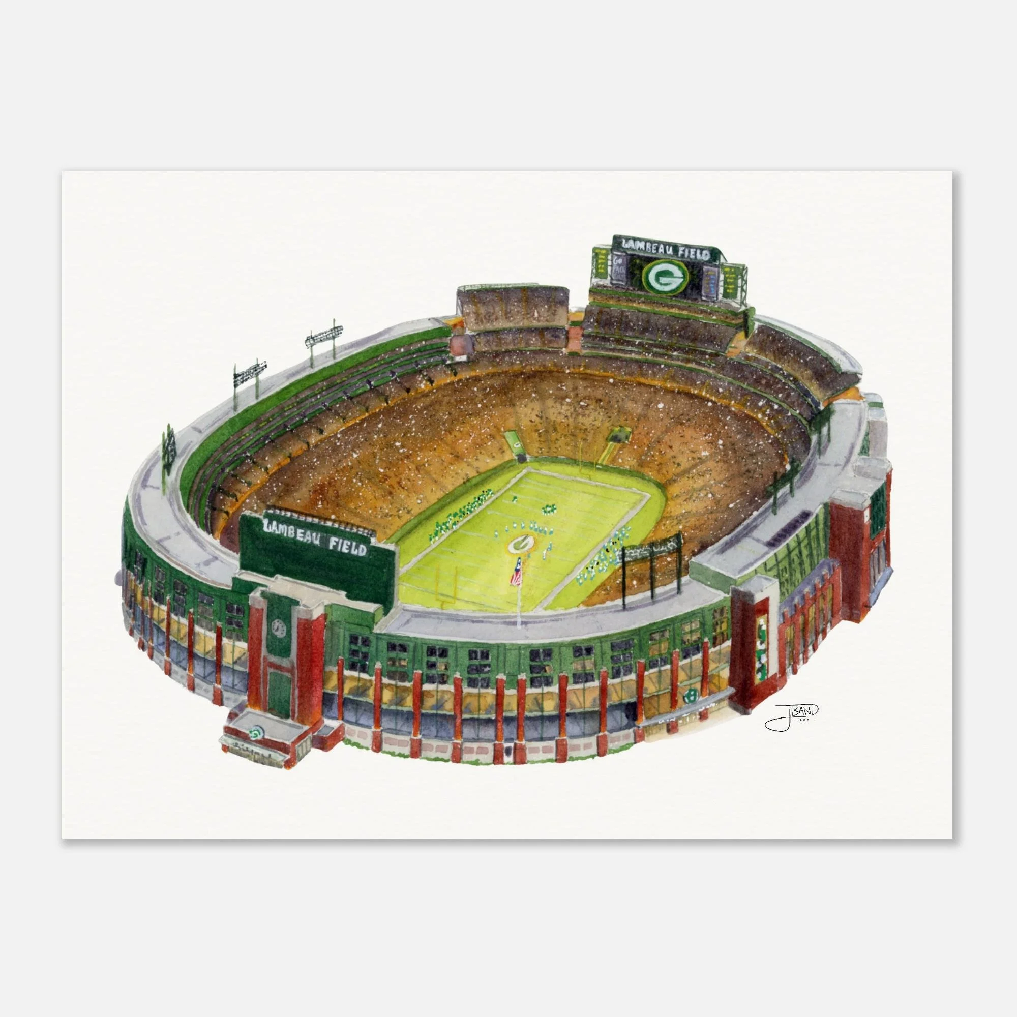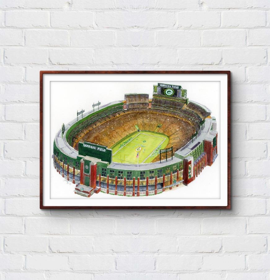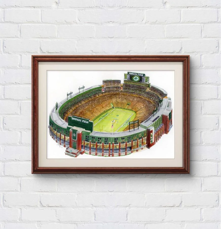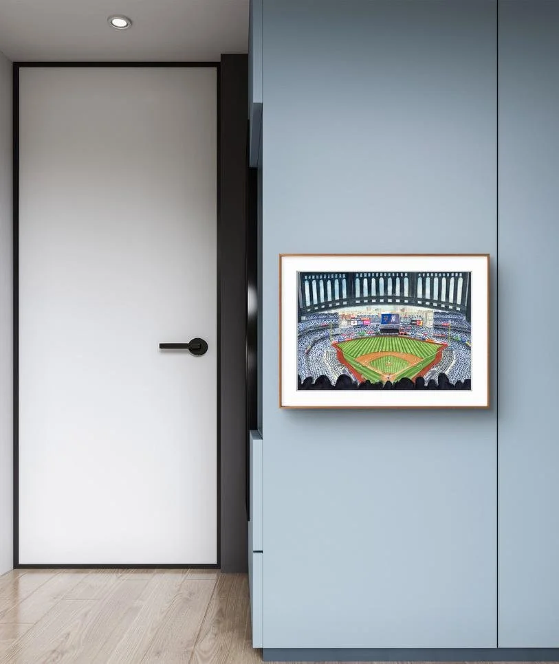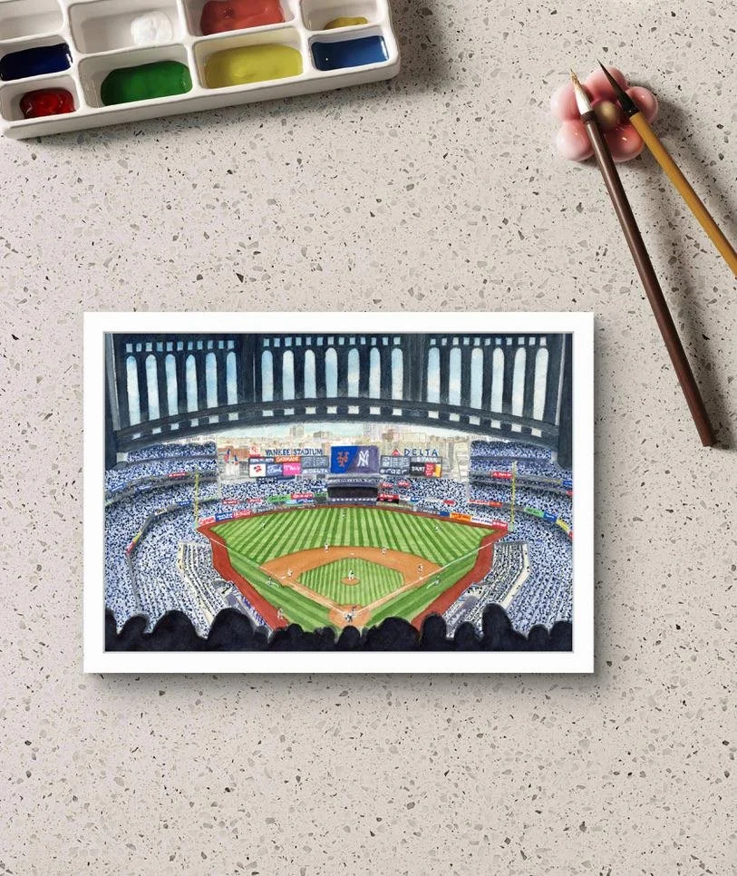 Celebrate the New York Yankees with this watercolor painting of Yankee Stadium. This piece captures the spirit of the Bronx's beloved team and the fanbase that backs them.