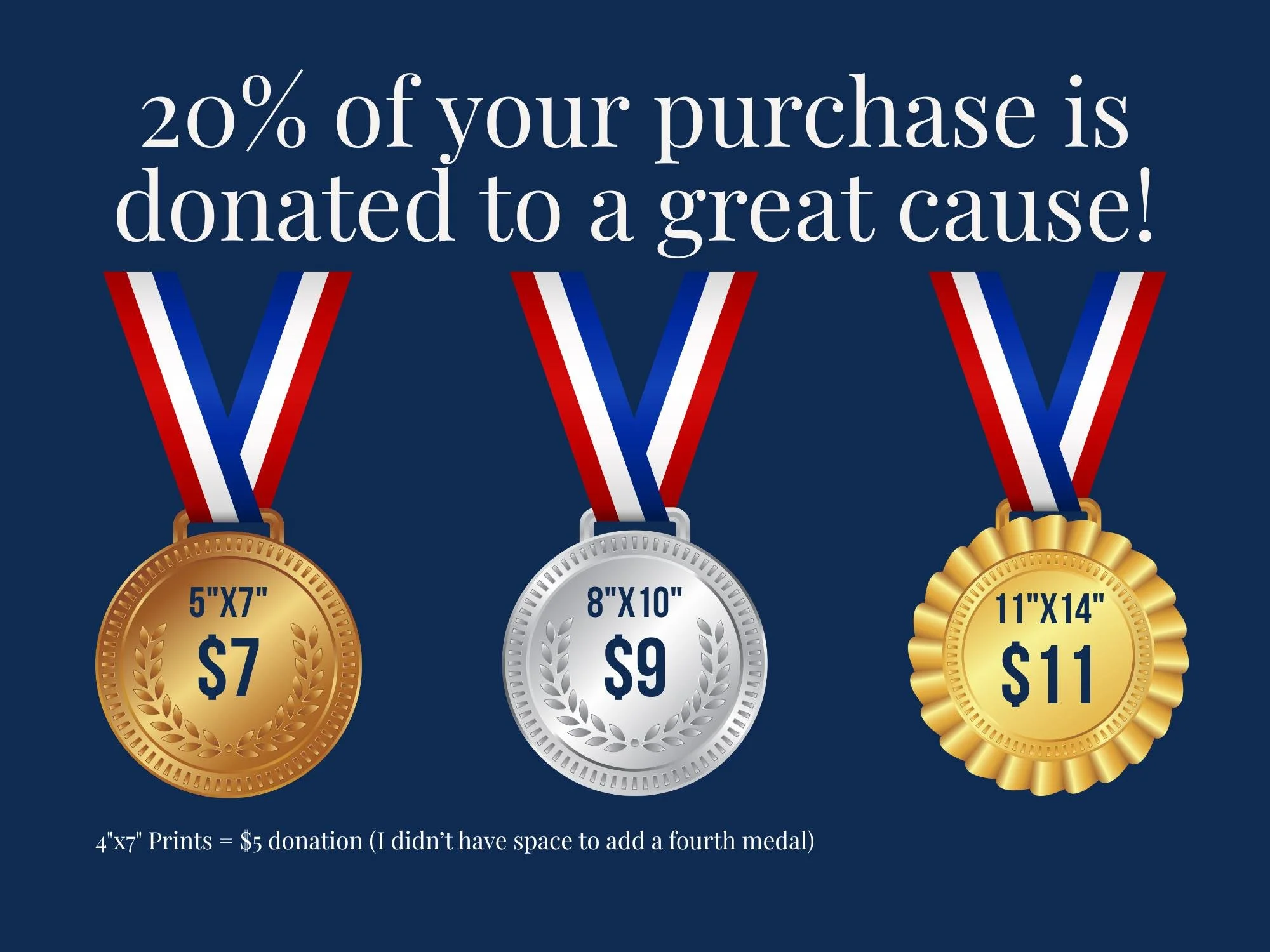 • Sizes Available: 4"x6"; 5"x7"; 8"x10"; 11"x14"; If you'd like a larger size, please reach out.