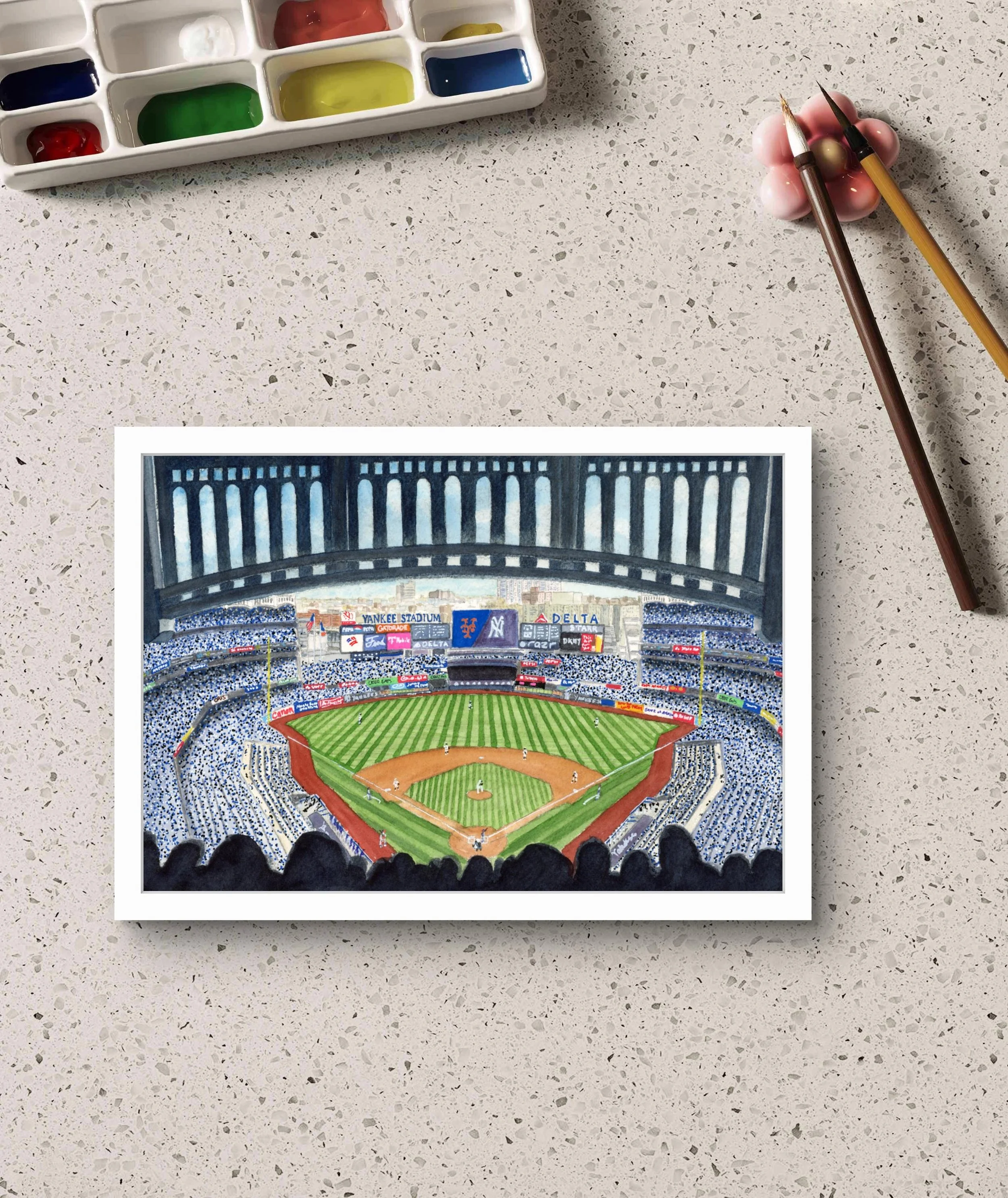 Celebrate the New York Yankees with this painting of Yankee Stadium with this watercolor art print. This piece captures the spirit of the Bronx's beloved team and the fanbase that backs them.